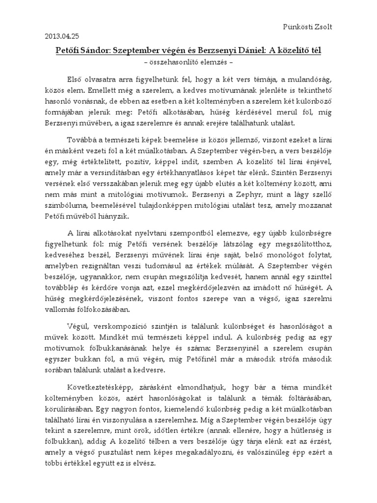 Petőfi Szeptember Végén Elemzés